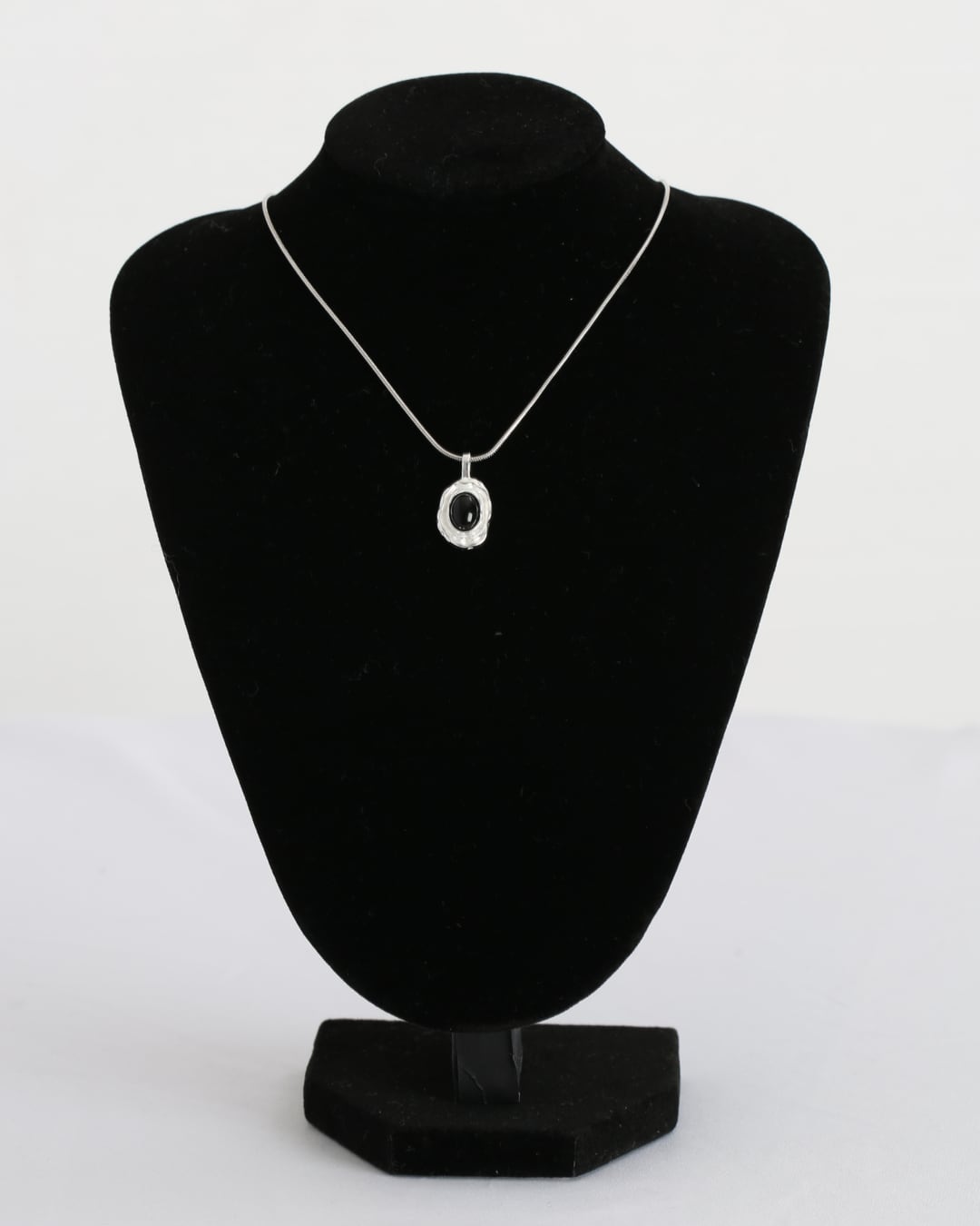シルバーの質感とオニキスの艶感が美しく調和し、スネークチェーンとの相性は抜群です。