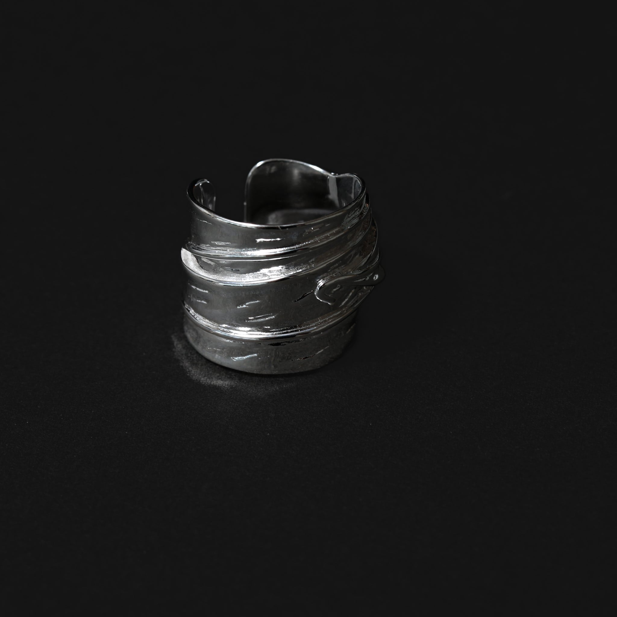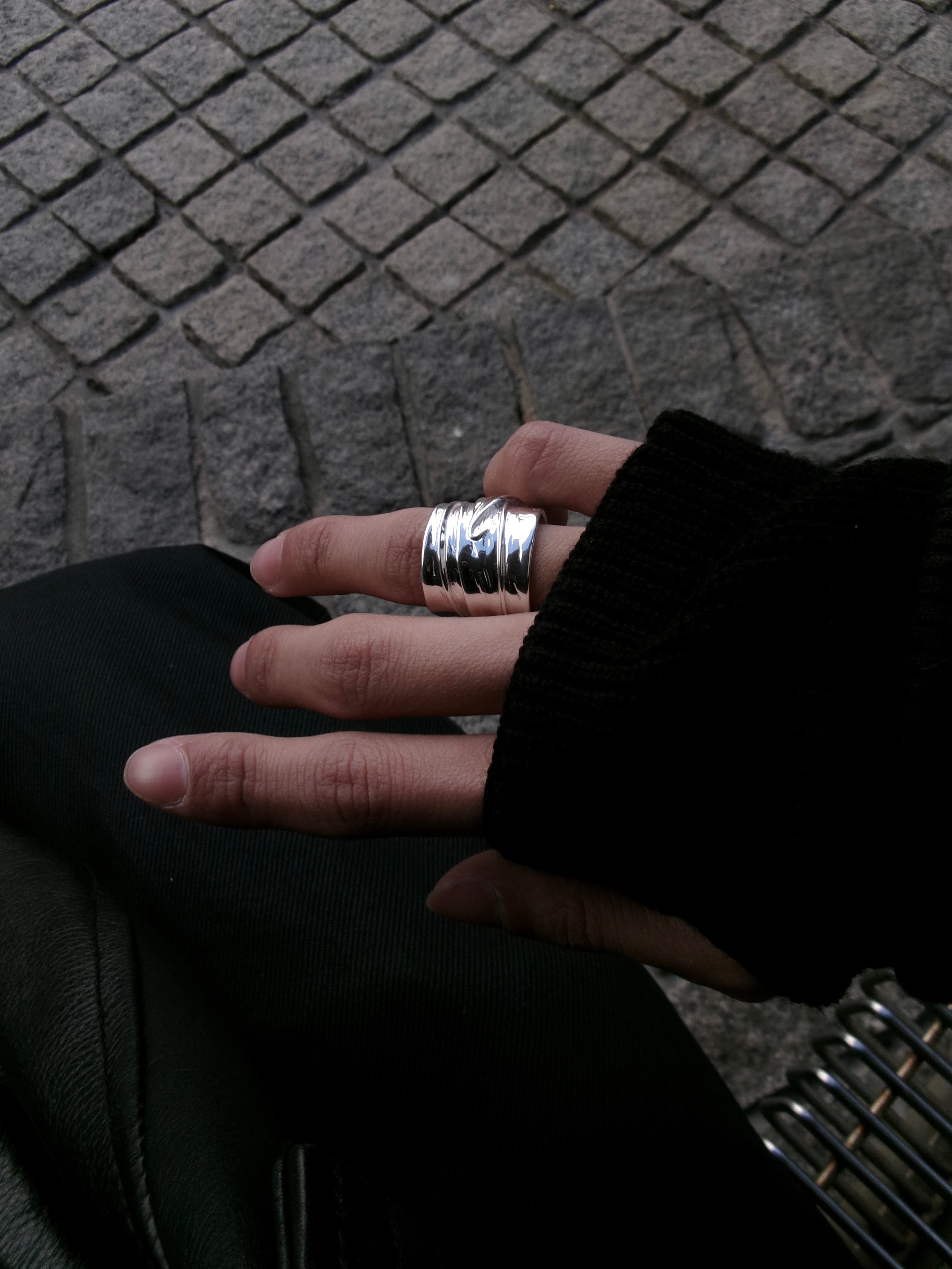 あえて硬質な金属で起こすことで生まれる違和感と存在感。
