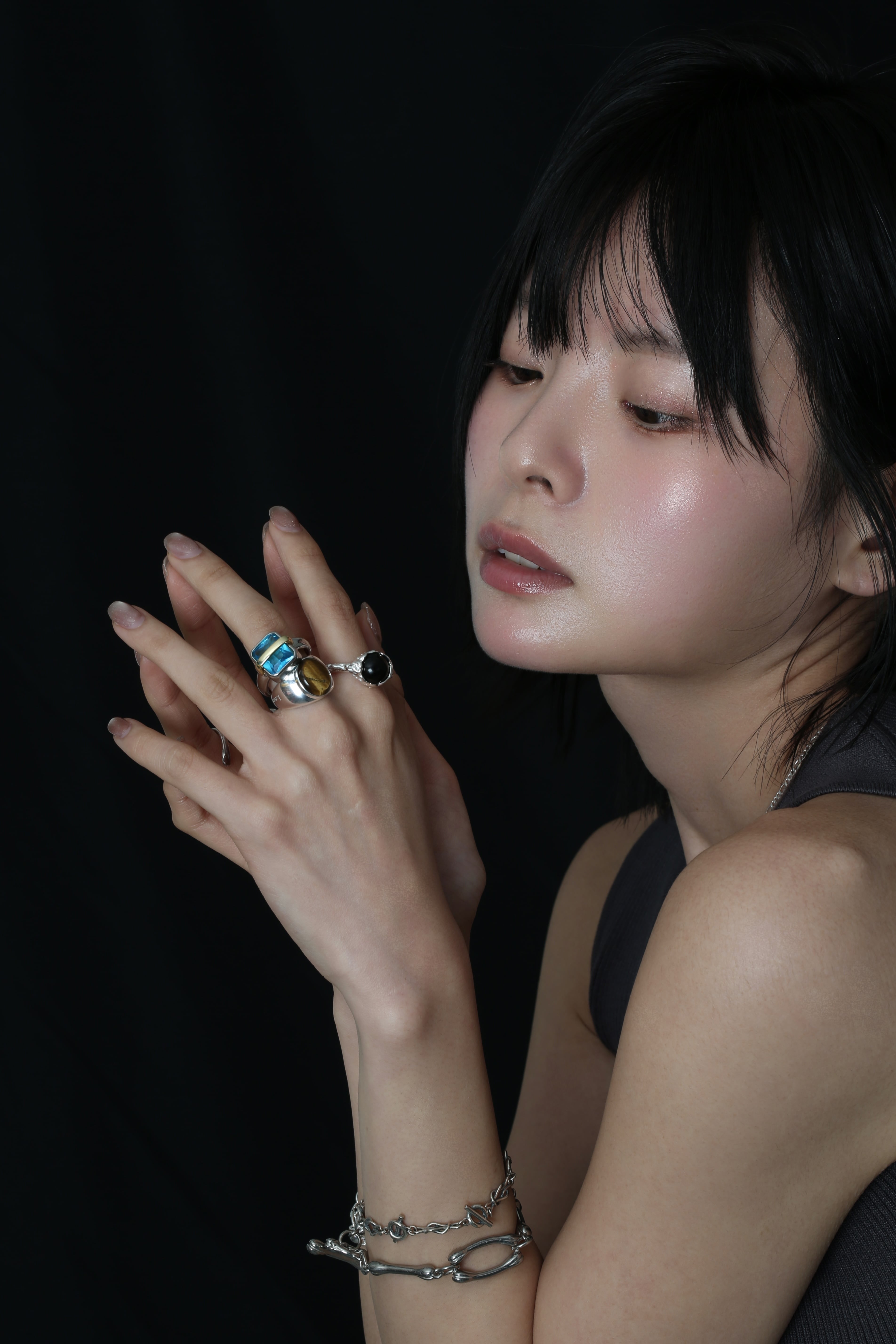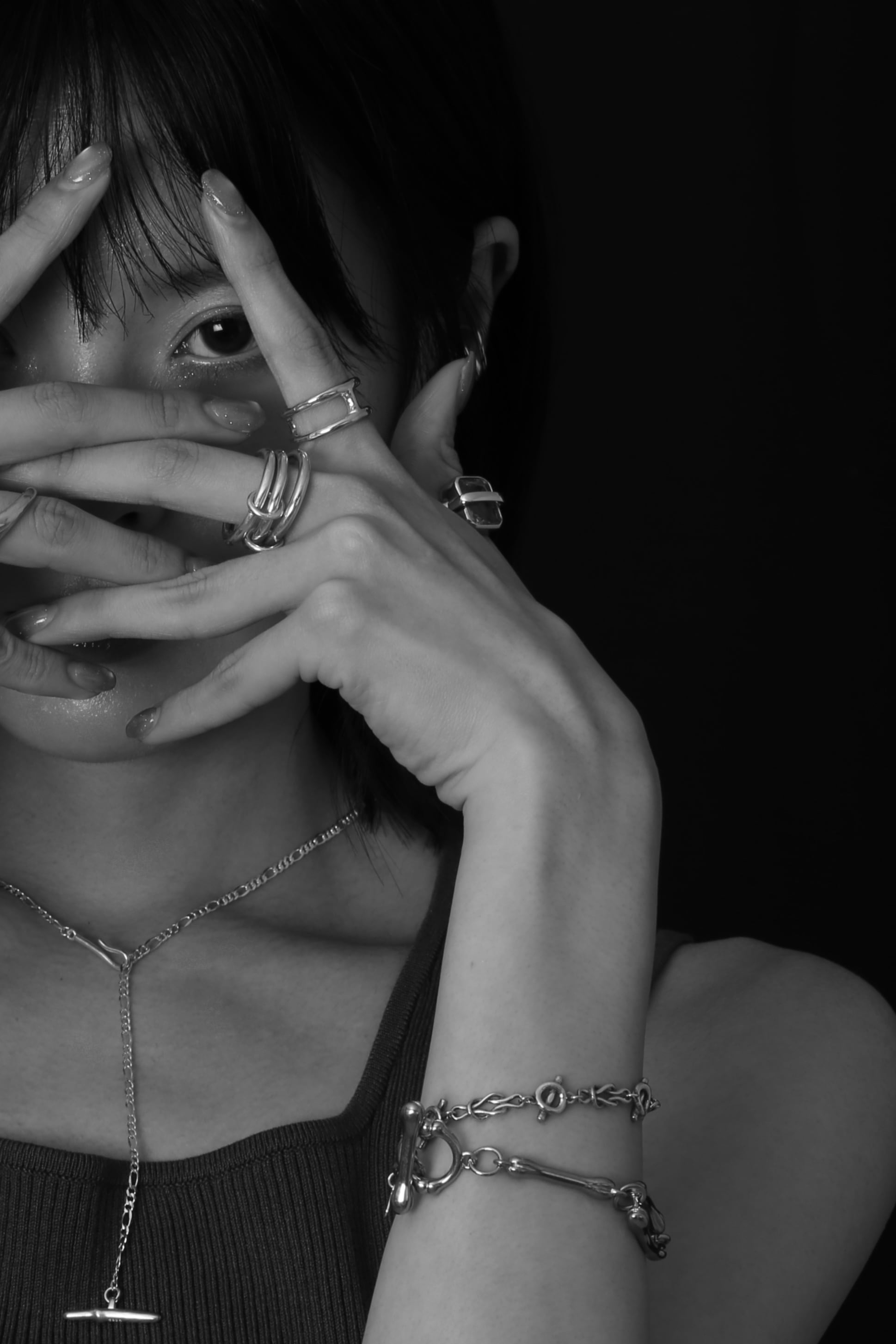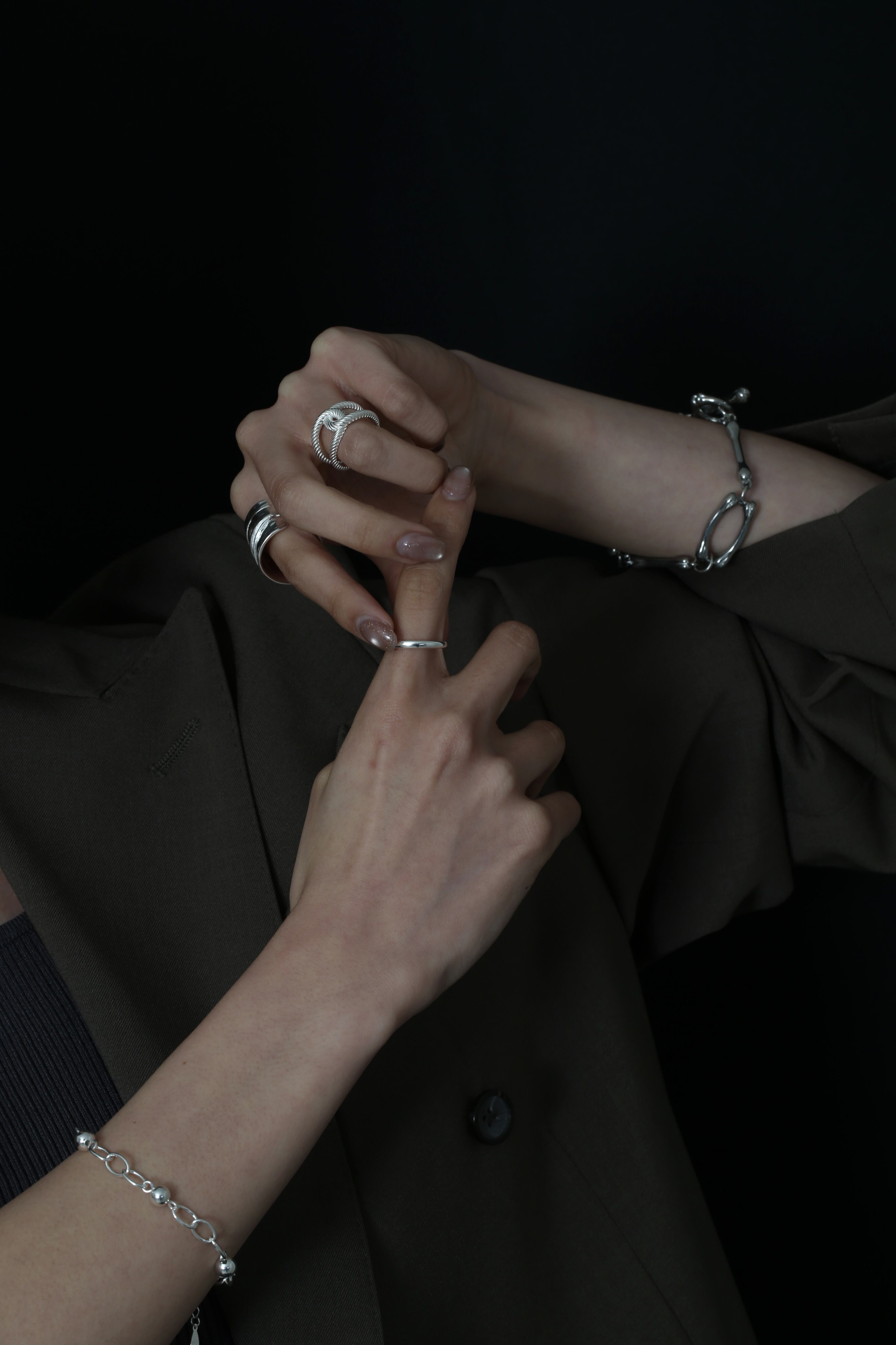 均整の取れたチェーンとは違い、一本一本にわずかな揺らぎを持たせることで、静かな存在感を生み出しています。